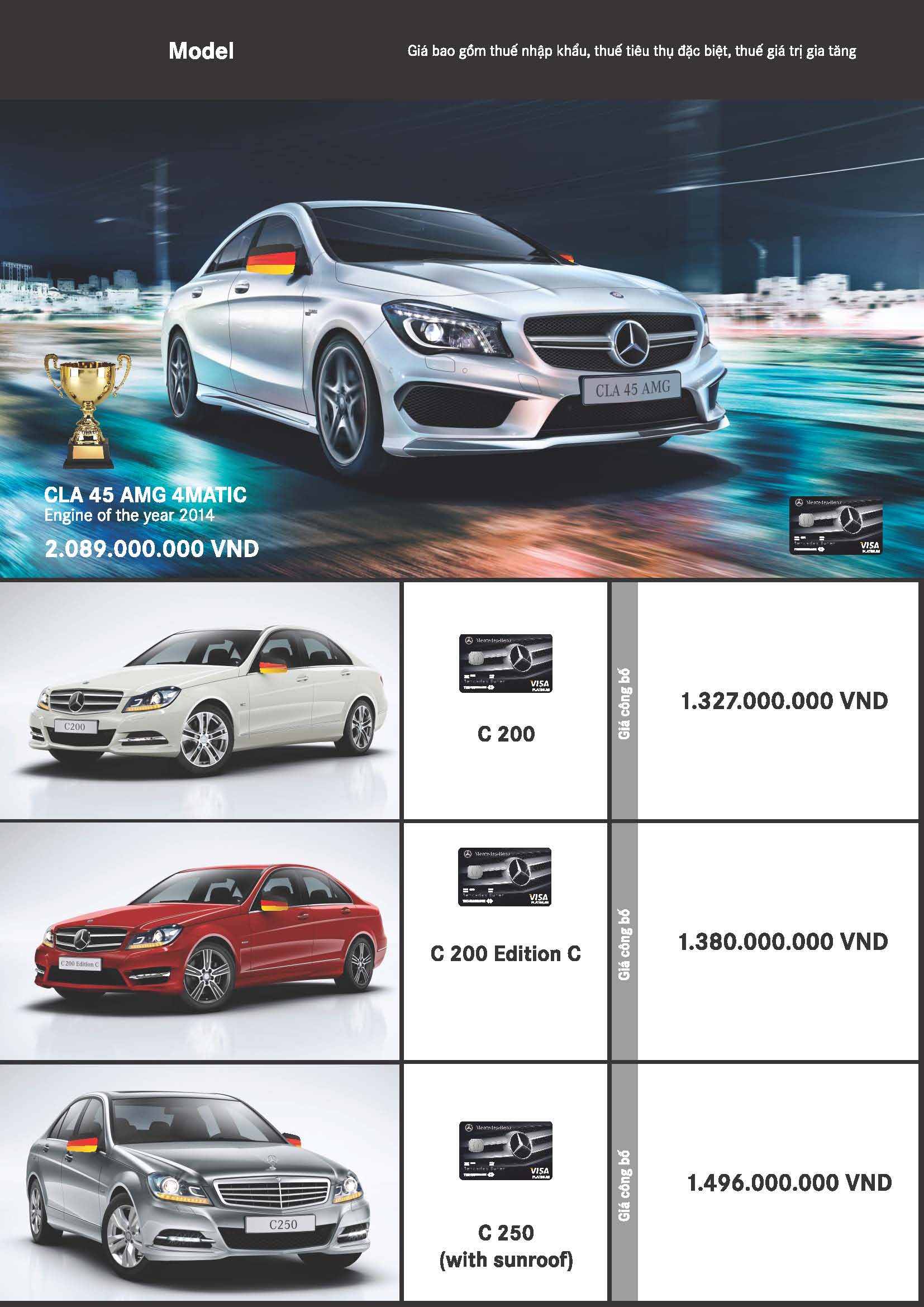 Đồng hành cùng đội tuyển Đức trong kỳ world cup 2014 này Mercedes Benz có chương trình khuyến mãi hấp dẫn cho các dòng xe. Đặc biệt cho dòng xe sau: