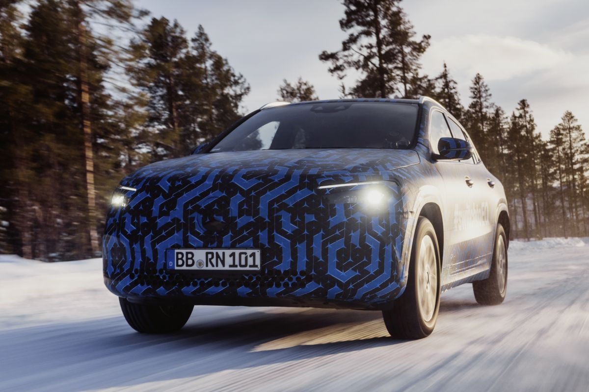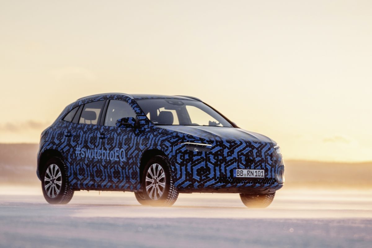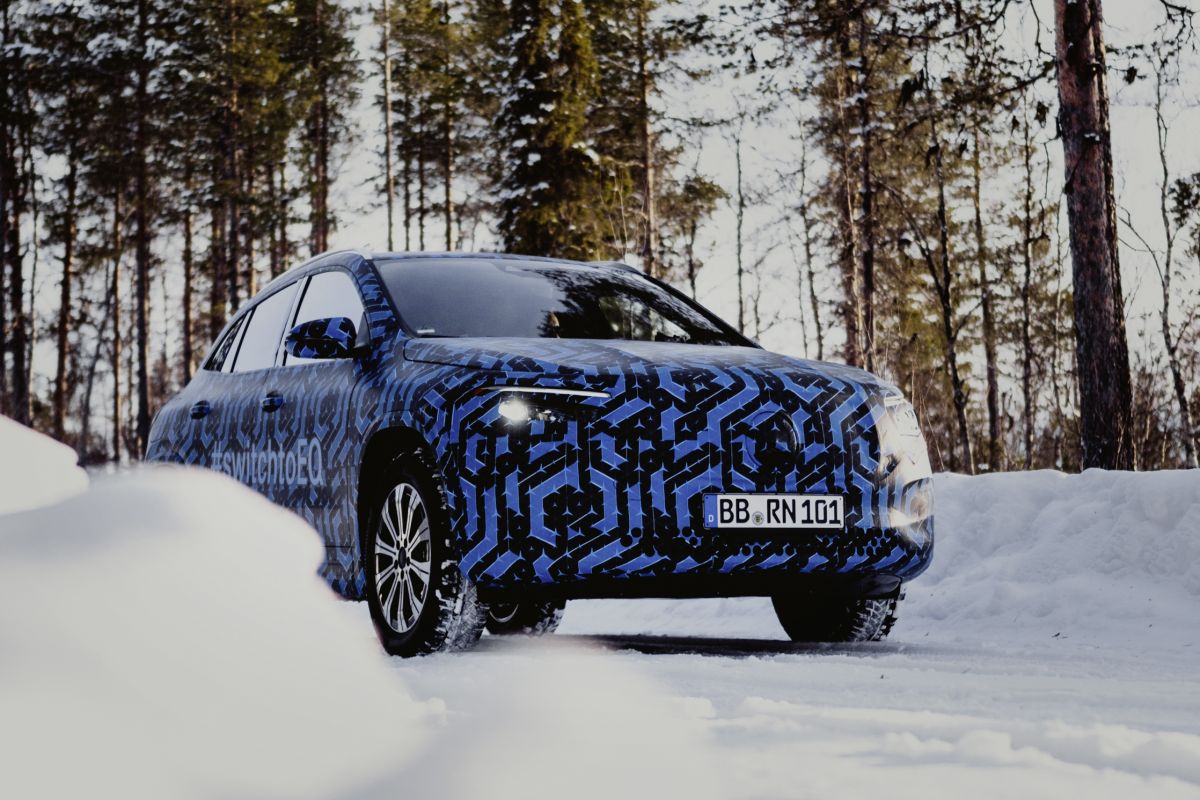 Để giảm bớt sự chờ đợi, Mercedes-Benz đã phát hành một vài hình ảnh trêu ghẹo cho thấy EQA trong bộ đồ thử ngụy trang. Các nguyên mẫu hiện đang đi trên những con đường phủ đầy tuyết của Thụy Điển, để ghi lại tác động của cảm lạnh đối với việc quản lý nhiệt của pin và bên trong, cũng như để sạc