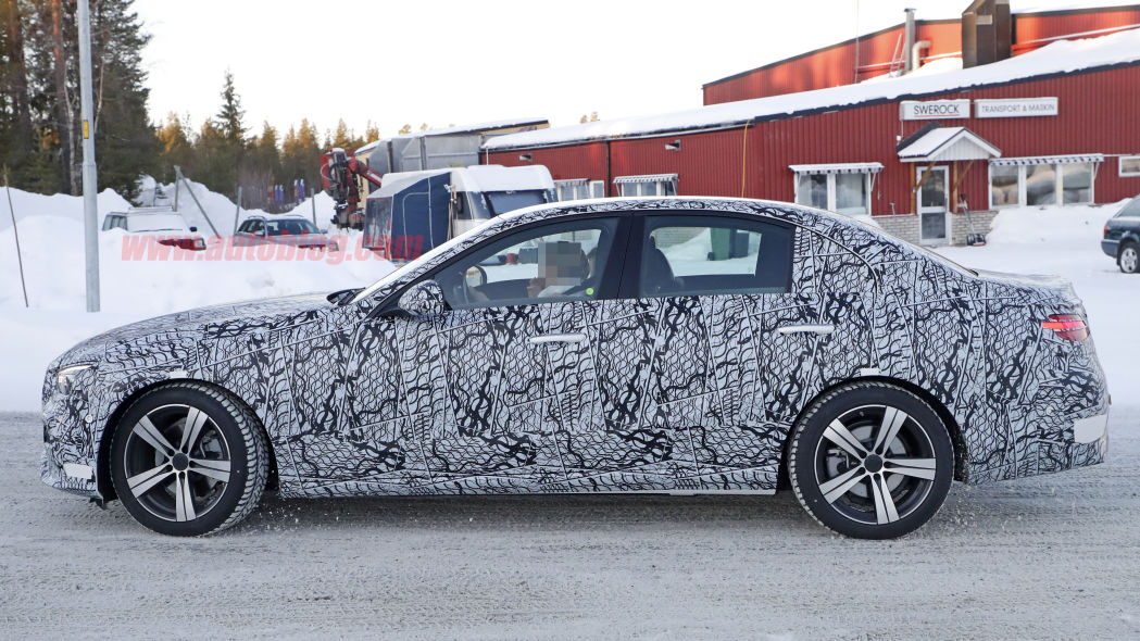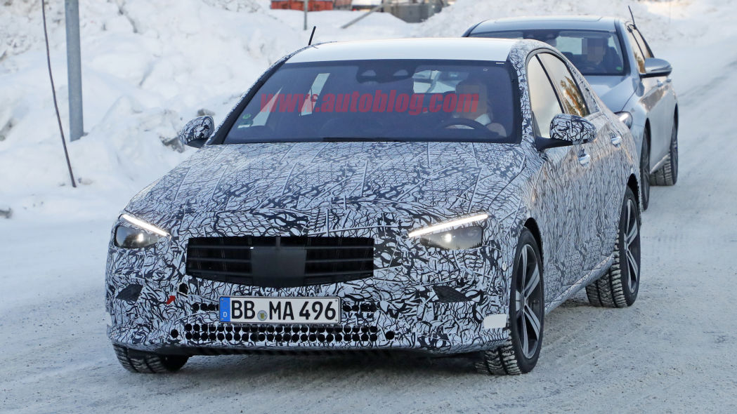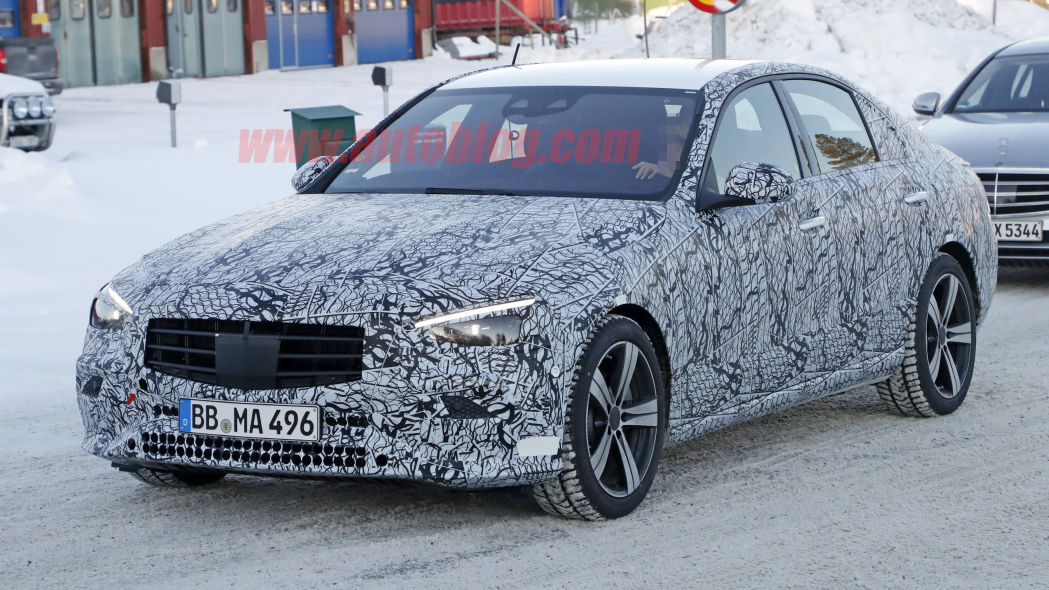 Mũi của C-Class trông thấp và rộng hơn so với mô hình hiện tại, và rất nhiều điều đó là do đèn pha vuốt ngược, bóng bẩy. Bản thân lưới tản nhiệt cũng rất rộng và nằm thấp hơn ở phần đầu xe. Hoàn thiện vẻ ngoài là mui xe rất phẳng, một sự thay đổi từ tác phẩm điêu khắc hơn của chiếc xe hơi.