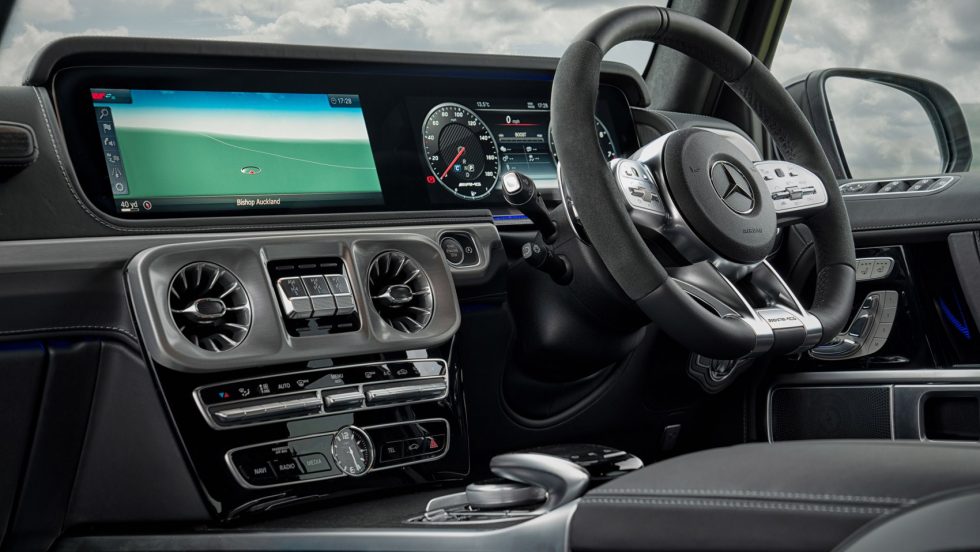 Mercedes giữ lại hầu hết mọi thứ từ thiết kế cũ của G-Class 1970s, nhưng đã nâng cấp khung gầm Ladder-frame với dầm thép và các tấm gia cố nhôm thông minh khác. Điều này giảm trọng lượng của G63 2022 xuống 170kg, còn khoảng 2.5 tấn. Phần lớn sức nặng này nằm ở phần cứng của cấu hình off-road, gồm bộ khoá vi sai (ở mỗi trục và ly hợp trung tâm) và hộp số Low-Speed Transmission. Duy nhất cấu hình 5 chỗ được giữ lại trên thế hệ mới, và toàn bộ nội thất của Mercedes-AMG G63 gần đây đều đã thay đổi. Leo lên chiếc G mới và bạn sẽ không thể nhầm lẫn nó với bất kỳ mẫu SUV hay off-roader nào khác.